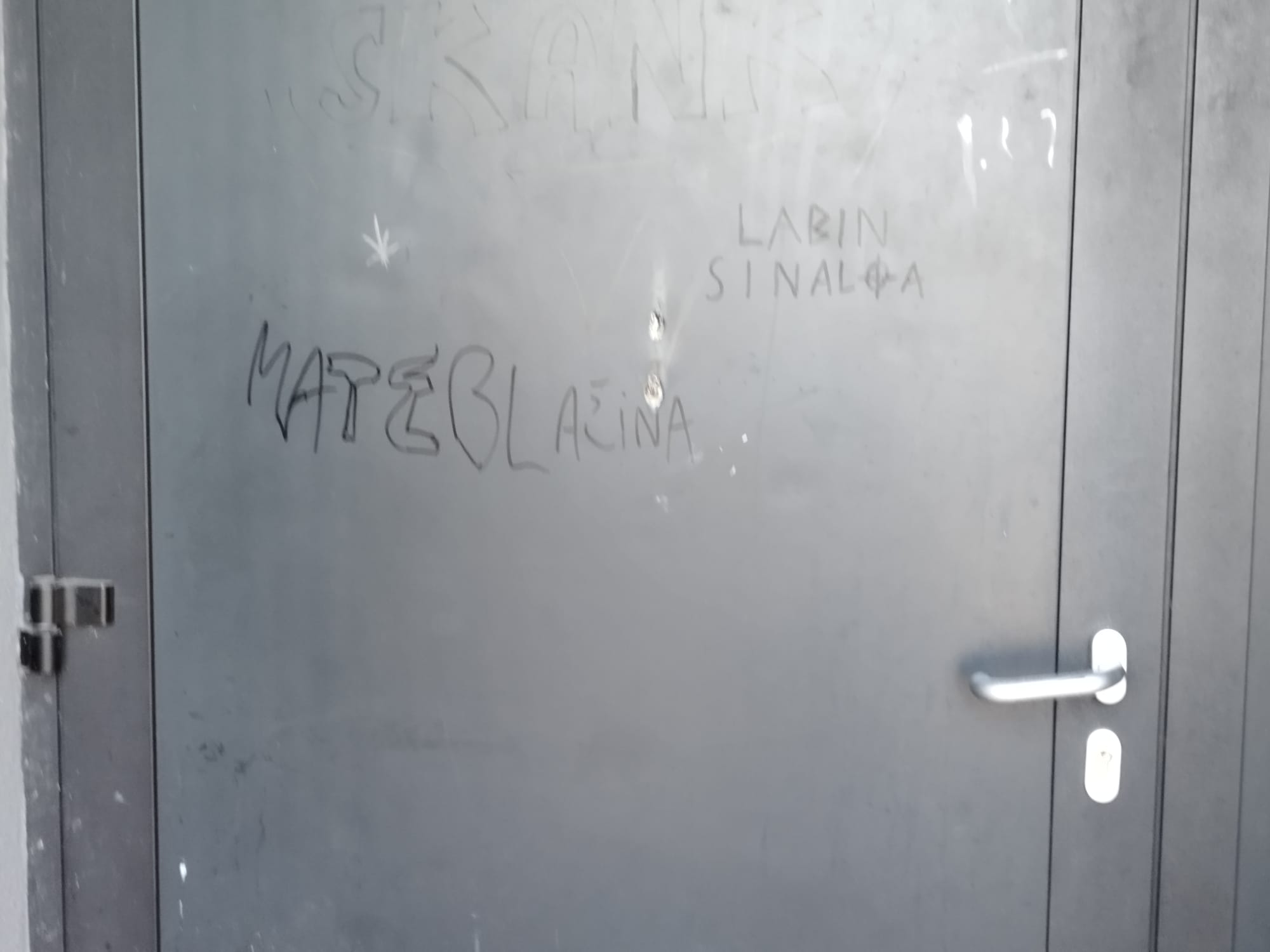 Oko dvorane sam naišao na polomljene kvake, uništena vrata, iščupane zidne lampe, uništene i pobacane oluke, iščupana alarmna zvona, za ne daj bože požara, išarane i uništene zidove.