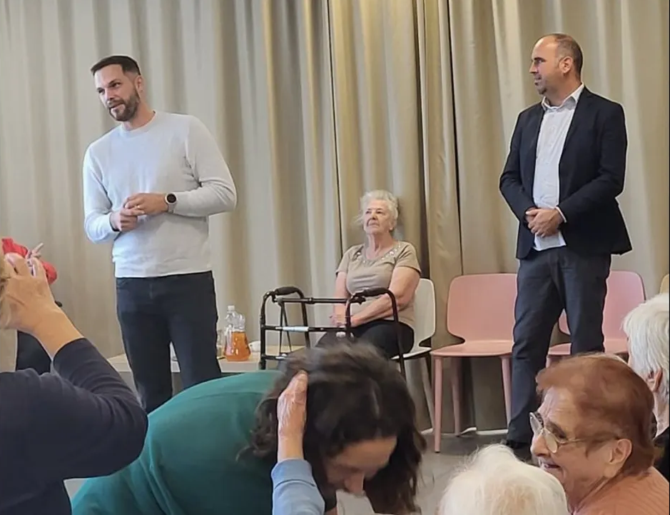 Korisnici doma okupili su se i družili uz zvukove harmonike Denisa Alićajića, koji je mnoge, unatoč poodmakloj dobi, potaknuo na pjesmu i ples. Ugodnom druženju i dobrom raspoloženju pridružili su se predstavnici Grada Labina, zamjenik gradonačelnika Goran Vlačić i pročelnik Upravnog odjela za društvene djelatnosti Borjan Batagelj, uručivši korisnicima doma prigodne poklone -  košare napunjene voćem i kolačima, a za uspomenu su dobili ručne radove korisnika – šeširiće s porukama.