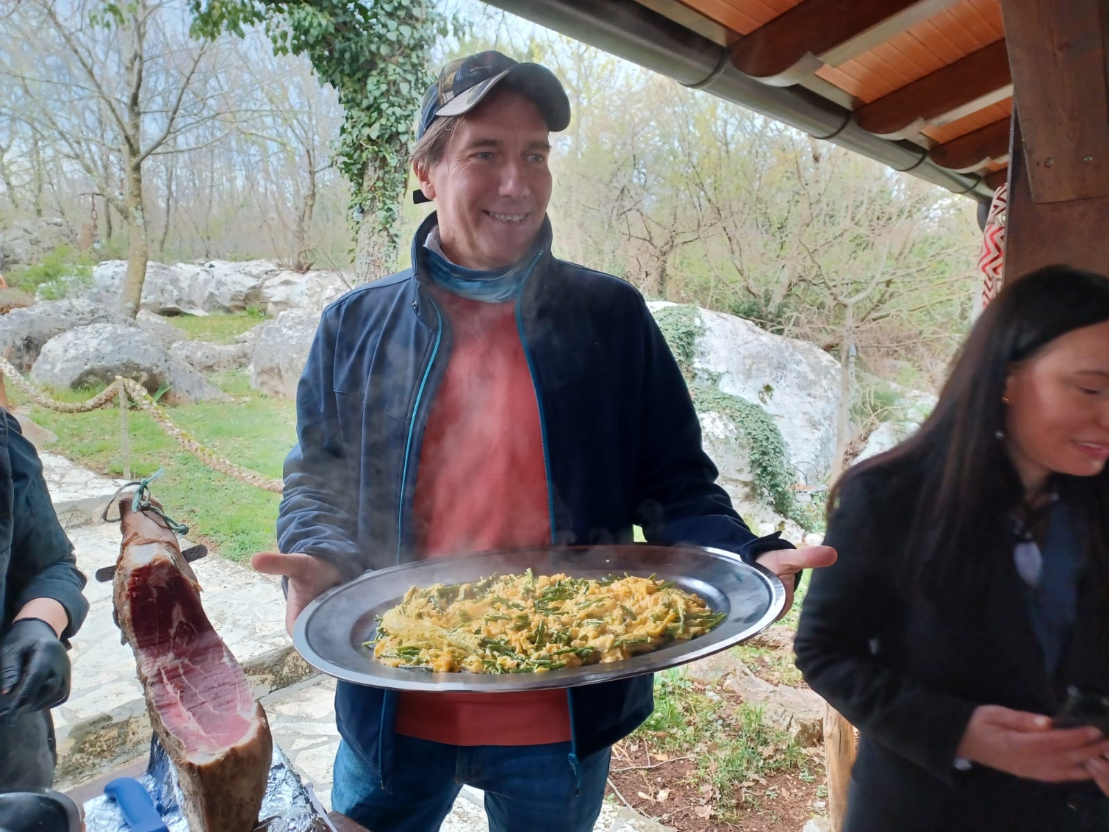 Unatoč prohladnom i vjetrovitom vremenu, sudionici su se okupili u Agroturizmu Cerovac gdje su domaćini pripremali sezonsku marendu temeljenu na šparugama, fritaju s mladim lukom, pršutom i pancetom, uz druga autohtona jela.