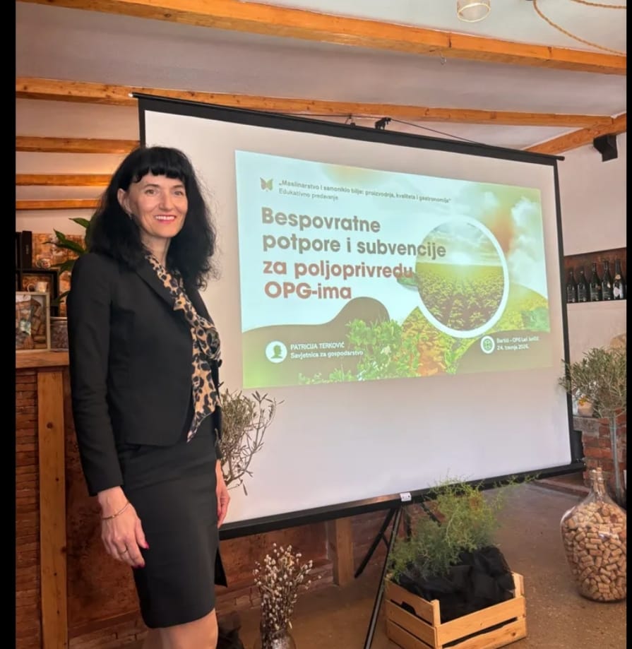 O dostupnim potporama govorile su Patricija Terković iz Grada Labina i Mirela Faraguna iz LAG-a Istočna Istra, istaknuvši mogućnosti financijske podrške za poljoprivrednike.